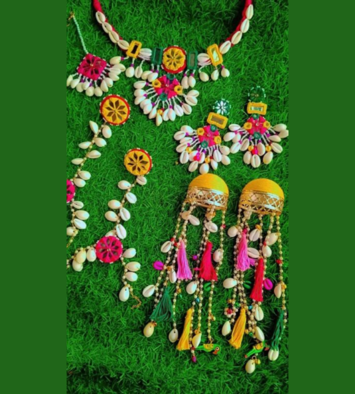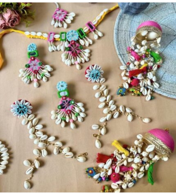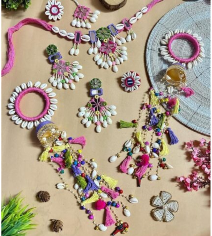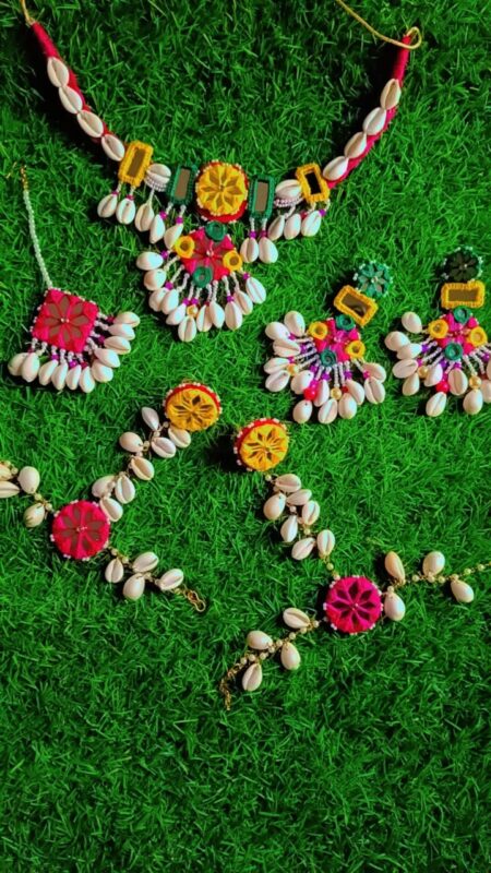 Multicolor Cowrie Shell Bridal Jewelry Set | Haldi Mehendi Special
