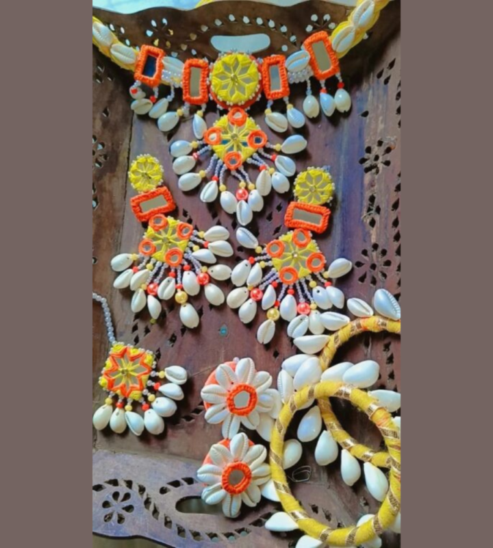 Vibrant Cowrie Shell Bridal Jewelry Set | Haldi Mehendi Festive Collection