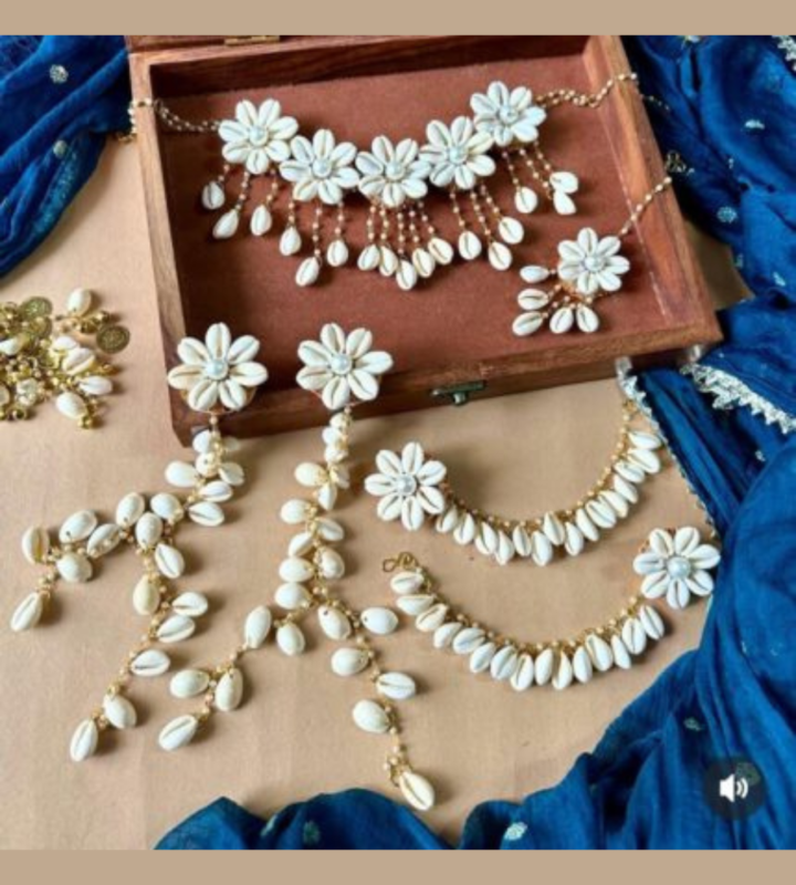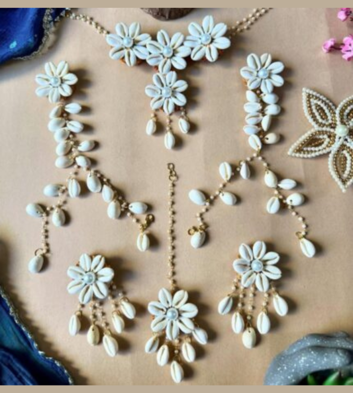 Elegant White Cowrie Shell Bridal Jewelry Set | Boho Haldi Mehendi Accessories