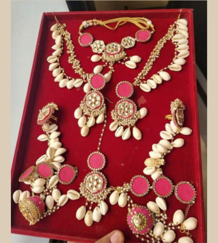 Dulhaniya Traditional Cowrie Bridal Jewelry | Pink & White Handmade Set