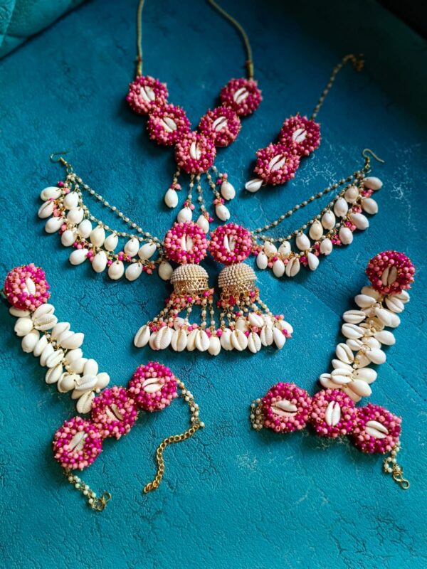 Pink & Gold Cowrie Shell Bridal Jewelry Set | Haldi Mehendi Special