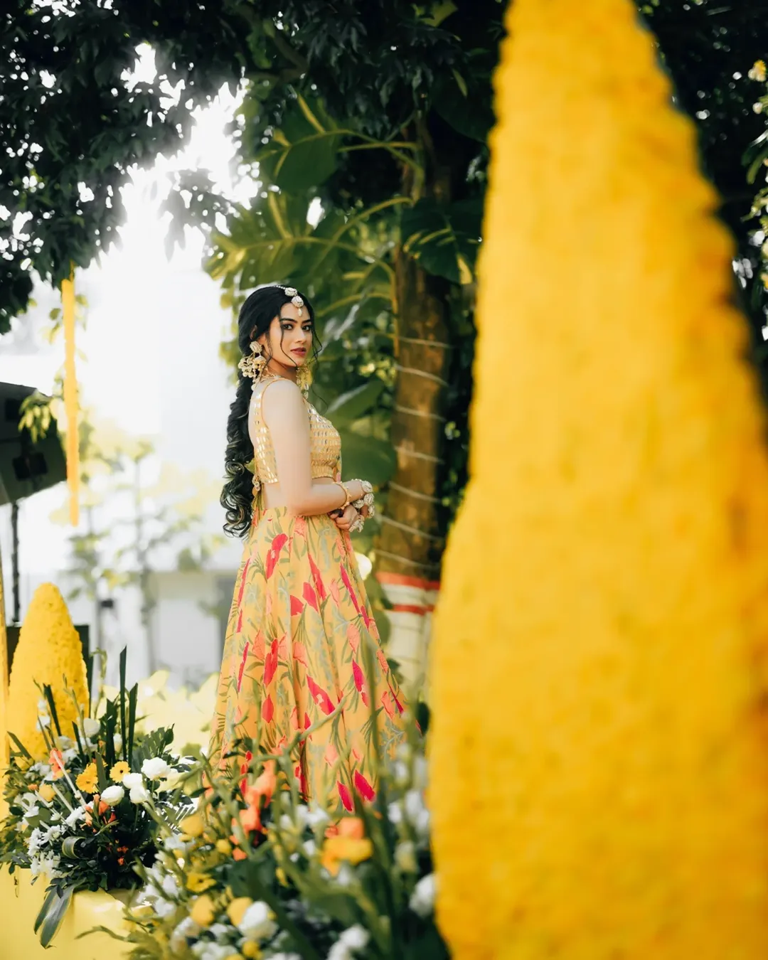 Yellow Beaded Bridal Haldi Jewellery Set - Floral Jewellery for Women